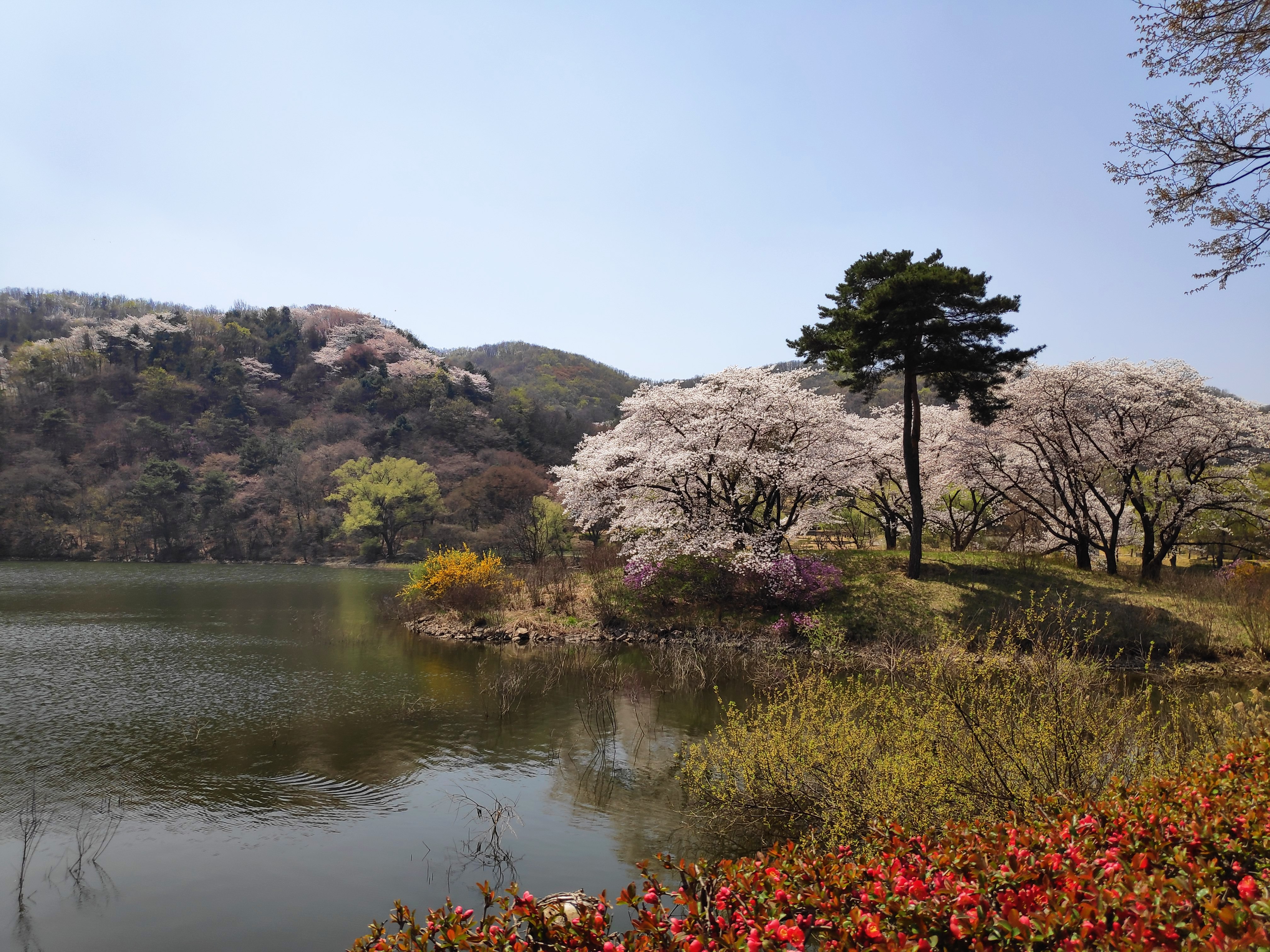 벚꽃축제기간에는 아무런 꽃도 없었는데 지금은 꽃이 마구마구 피고 있다. 아직 모두 핀 것이 아니라서 이번 주 내내 이정도 뷰는 볼 수 있을 것 같다. 내 추억속의 호암미술관은 이거보다 좀 더 예뻤던 것 같은데... 뭐 아무렴 어때. 지금 참 만족스러웠다.