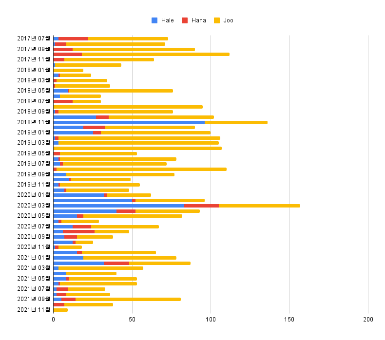 당연하게도 나의 시청수가 압도적으로 많다. 나는 일하면서도 bgm으로 틀어두는 경우가 많아서 그런거 같다. 쉬는 시간 대부분을 여기에 사용하기도 하고. 어쨌든 우리가족은 나말고는 거의 사용하지 않는 것으로 보인다. 조금은 보는 줄 알았는데... 그래도 이 통계를 보고 넷플릭스 중단에 대한 아쉬움이 많이 줄었다. 거의 나만을 위한거였으니 나만 생각하면 되니까.