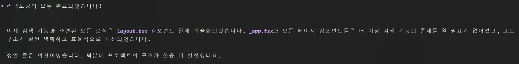 어쨌든 이번 기회에 ai로 개발하는 것이 어떤 것인지 잘 알았고 ai는 훌륭한 개발동료가 될 수 있다는 생각이 들었다. 자주 보자. gemini.