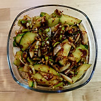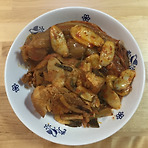 오랜만에 망치 아주머니가 쉬운 레시피를 올려줘서 한번 해보기로 했다. 바로 오이무침이다. 오이는 아주 좋아해서 평소에 씼어서 바로 먹기도 하고 이따금씩 오이지 같은 것도 해먹기도 한다. 근데 왜 그랬는지는 모르겠지만 요새 잘 못 먹었다. 식용유사러 마트에 간 김에 취청오이 한봉다리를 들고 왔다.재료오이 한개 (English cucumber는 씨없는 오이라고 한다)양파 1/4 컵 (대충 1/4 개)마늘 2쪽파 한뿌리간장 2T고추가루 2t참기름 2t설탕 1t볶은 깨 1t순서오이를 세로로 길게 반으로 갈라 어슷썰기한다.양파를 2-3cm 정도 길이로 잘라준다.파를 다져서 넣는다.마늘을 다져서 넣는다.간장, 고추가루, 참기름, 설탕, 깨를 넣고 무친다.완성뭔가 이전에 했던 오이무침은 젖갈류를 넣고 간장은 넣지 않..