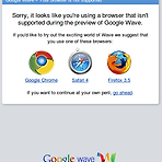 집에서 쓰는 Averatec 에는 내일이면 정식버전이 나올 Ubuntu 9.10을 설치해두었는데 아무래도 느린 컴퓨터라 좀더 빠른 브라우저를 찾게 됩니다. Chrome은 좋지만 마우스 제스쳐라던가 편리한 기능이 부족해서 못 쓰겠고... Firefox는 늘상 쓰던 것이니 그렇게 빠르다고 빠르다고 자랑하는 Opera를 써봤습니다. (Chrome 때문인지 요즘엔 이런말 안하는 듯..) 어쨌든 Opera로 오랜만에 Google Wave에 들어가려고 했더니만 이런게 나오네요. Opera... Google에게 버림받았어... ㅠㅠ